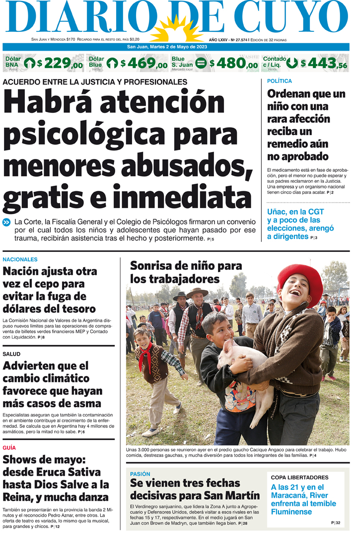Diario de Cuyo | HOME | Noticias Tapa Edición martes Por Redacción Diario de Cuyo 02/05/2023 · 0:00 Escuchar la noticia Escuchar la noticia Your browser doesn’t support HTML5 audio Ver los comentarios ›