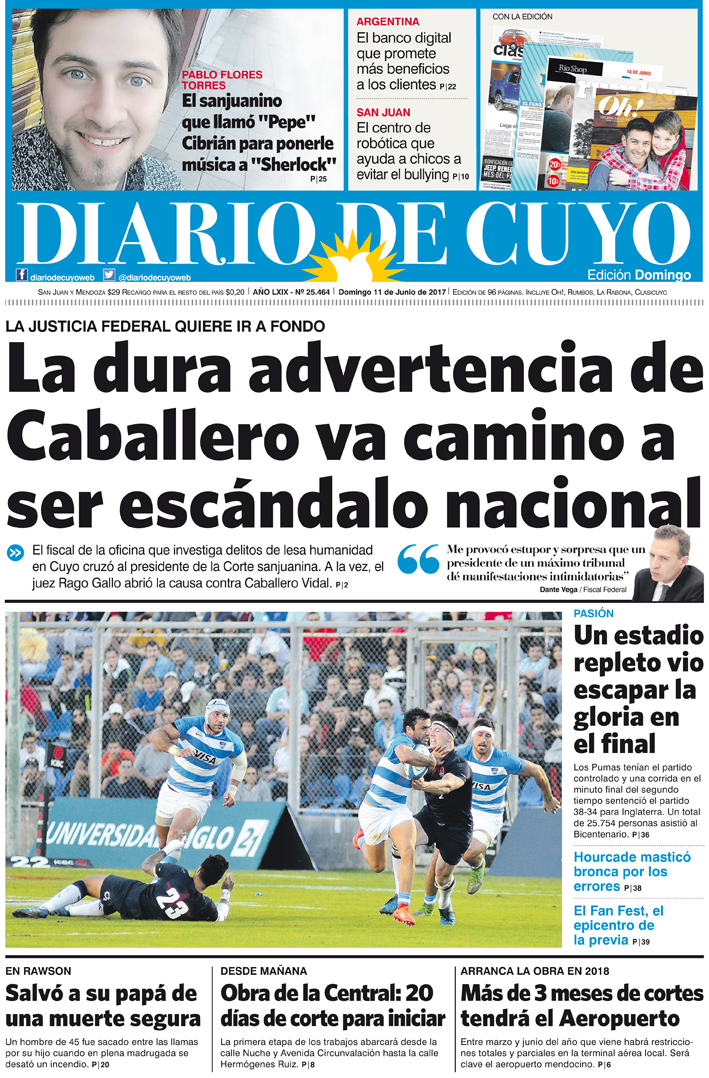 Diario de Cuyo | HOME | Noticias Tapa Editorial 11 de Junio de 2017 Por Redacción Diario de Cuyo 11/06/2017 · 0:00 Escuchar la noticia Escuchar la noticia Your browser doesn’t support HTML5 audio Ver los comentarios ›