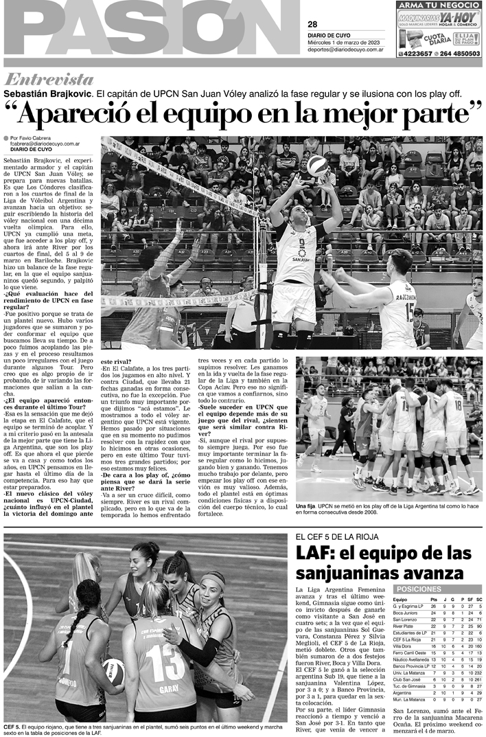 Diario de Cuyo | HOME | Noticias Tapa Pasión 01 de Marzo del 2023 Por Redacción Diario de Cuyo 28/02/2023 · 0:00 Escuchar la noticia Escuchar la noticia Your browser doesn’t support HTML5 audio Ver los comentarios ›