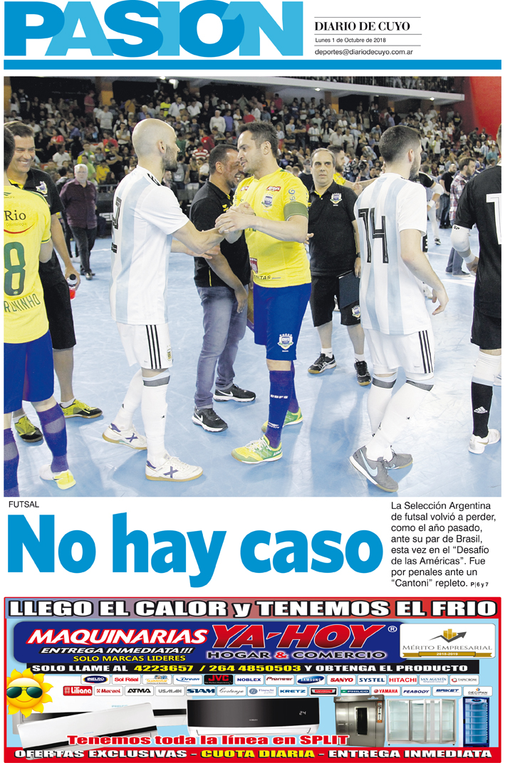 Diario de Cuyo | HOME | Noticias | Tapa Pasión Tapa Pasión 01 de Octubre de 2018 Por Redacción Diario de Cuyo 30/09/2018 · 0:00 Escuchar la noticia Escuchar la noticia Your browser doesn’t support HTML5 audio Tapa Pasión Ver los comentarios ›