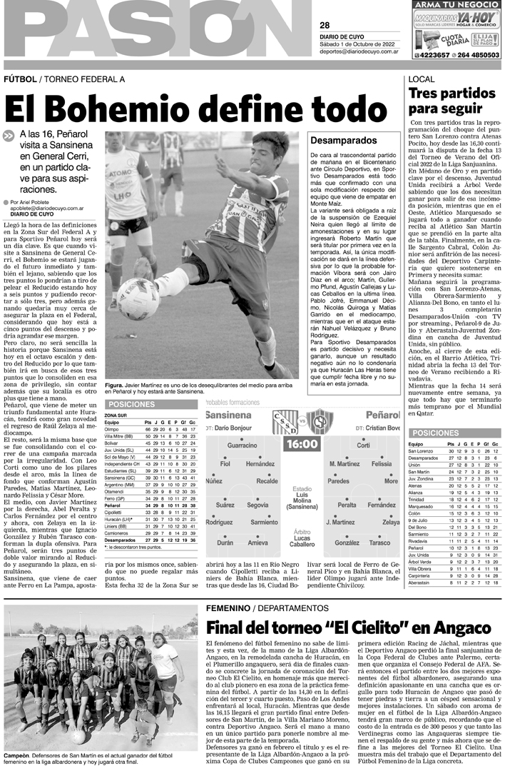 Diario de Cuyo | HOME | Noticias Tapa Pasión 01 de Octubre del 2022 Por Redacción Diario de Cuyo 01/10/2022 · 0:00 Escuchar la noticia Escuchar la noticia Your browser doesn’t support HTML5 audio Ver los comentarios ›
