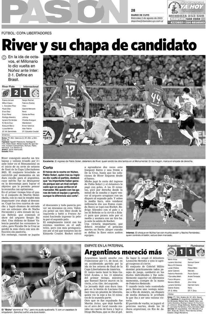 Diario de Cuyo | HOME | Noticias Tapa Pasión 02 de Agosto del 2023 Por Redacción Diario de Cuyo 02/08/2023 · 0:00 Escuchar la noticia Escuchar la noticia Your browser doesn’t support HTML5 audio Ver los comentarios ›