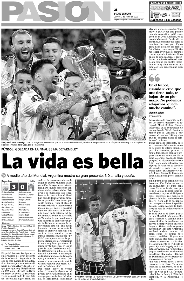 Diario de Cuyo | HOME | Noticias Tapa Pasión 02 de Junio del 2022 Por Redacción Diario de Cuyo 01/06/2022 · 0:00 Escuchar la noticia Escuchar la noticia Your browser doesn’t support HTML5 audio Ver los comentarios ›