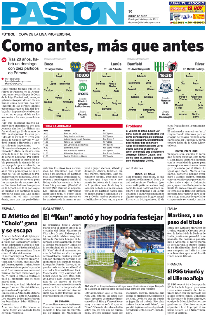 Diario de Cuyo | HOME | Noticias Tapa Pasión 02 de Mayo del 2021 Por Redacción Diario de Cuyo 01/05/2021 · 0:00 Escuchar la noticia Escuchar la noticia Your browser doesn’t support HTML5 audio Ver los comentarios ›