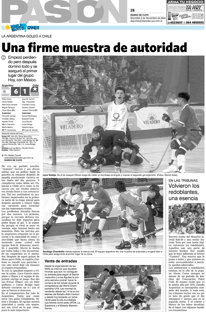 Diario de Cuyo | HOME | Noticias Tapa Pasión 02 de Noviembre del 2022 Por Redacción Diario de Cuyo 02/11/2022 · 0:00 Escuchar la noticia Escuchar la noticia Your browser doesn’t support HTML5 audio Ver los comentarios ›