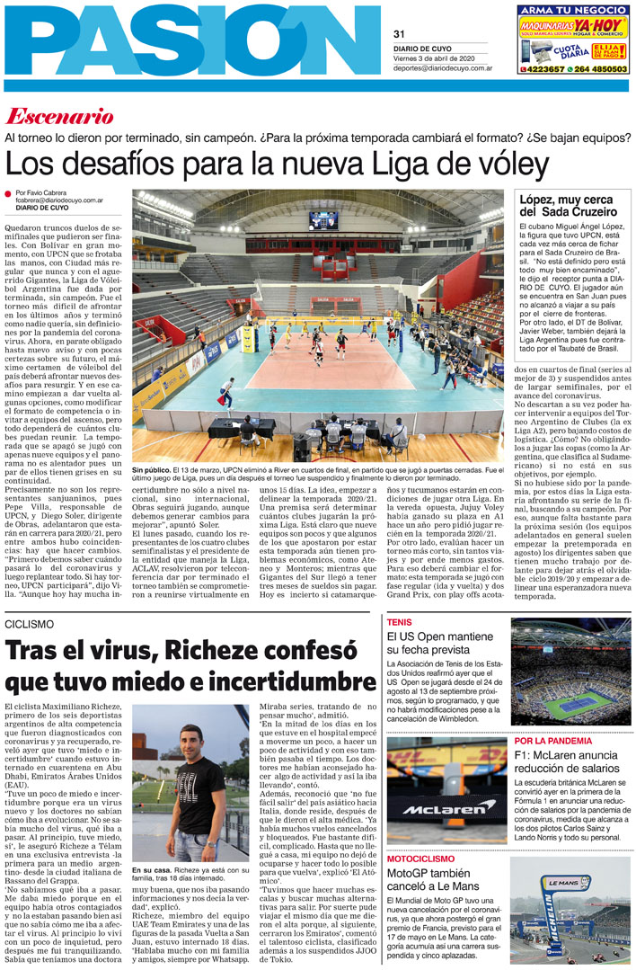 Diario de Cuyo | HOME | Noticias Tapa Pasión 03 de Abril del 2020 Por Redacción Diario de Cuyo 02/04/2020 · 0:00 Escuchar la noticia Escuchar la noticia Your browser doesn’t support HTML5 audio Ver los comentarios ›