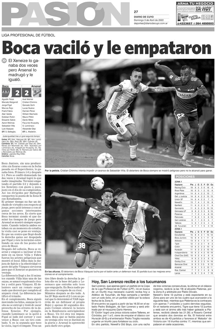 Diario de Cuyo | HOME | Noticias Tapa Pasión 03 de Abril del 2022 Por Redacción Diario de Cuyo 03/04/2022 · 0:00 Escuchar la noticia Escuchar la noticia Your browser doesn’t support HTML5 audio Ver los comentarios ›