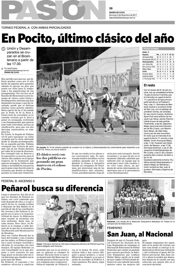 Diario de Cuyo | HOME | Noticias | Tapa Pasión Tapa Pasión 03 de Diciembre de 2017 Por Redacción Diario de Cuyo 02/12/2017 · 0:00 Escuchar la noticia Escuchar la noticia Your browser doesn’t support HTML5 audio Tapa Pasión Ver los comentarios ›