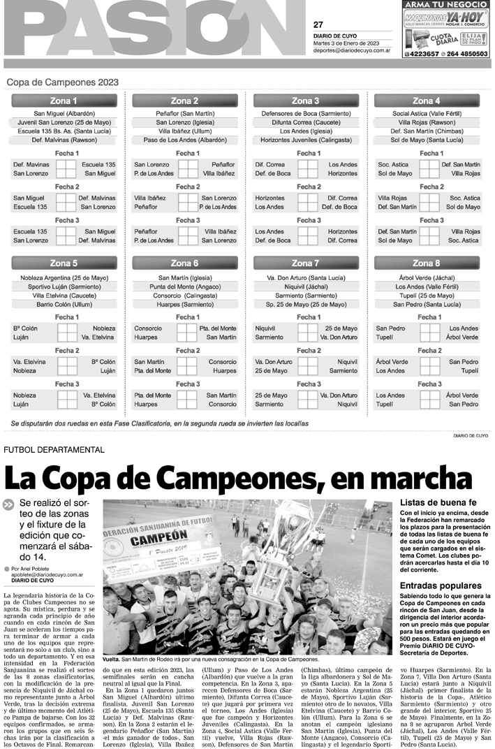 Diario de Cuyo | HOME | Noticias Tapa Pasión 03 de Enero del 2023 Por Redacción Diario de Cuyo 02/01/2023 · 0:00 Escuchar la noticia Escuchar la noticia Your browser doesn’t support HTML5 audio Ver los comentarios ›