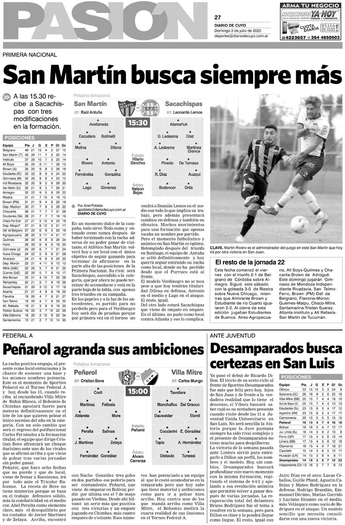Diario de Cuyo | HOME | Noticias Tapa Pasión 03 de Julio del 2022 Por Redacción Diario de Cuyo 02/07/2022 · 0:00 Escuchar la noticia Escuchar la noticia Your browser doesn’t support HTML5 audio Ver los comentarios ›