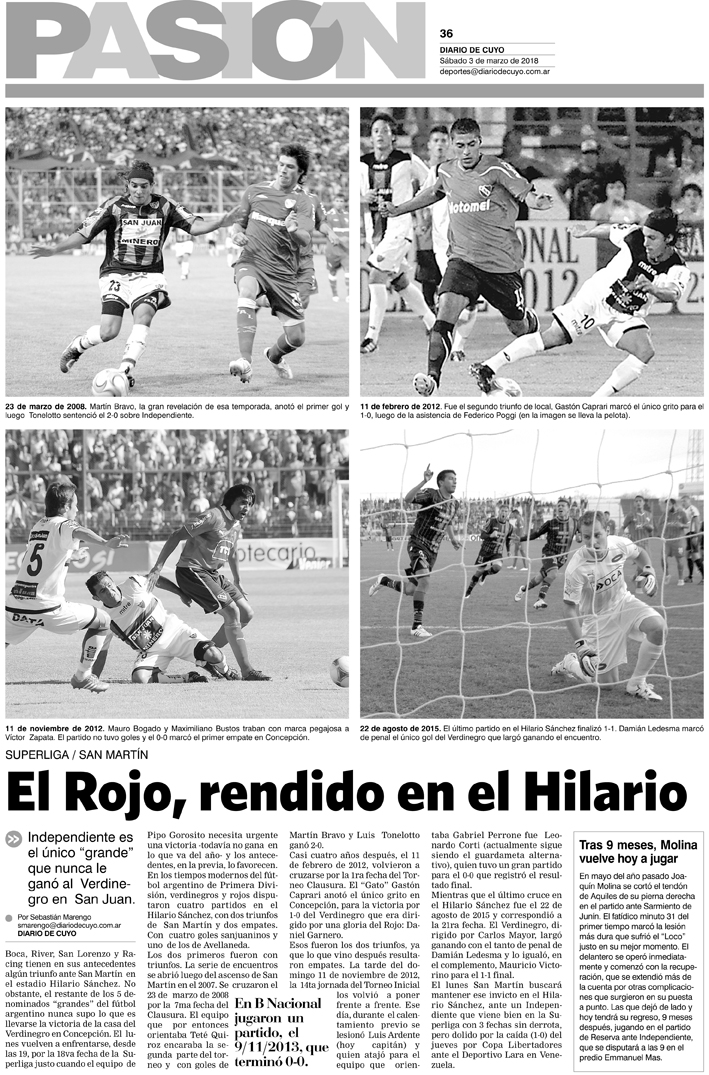 Diario de Cuyo | HOME | Noticias | Tapa Pasión Tapa Pasión 03 de Marzo del 2018 Por Redacción Diario de Cuyo 02/03/2018 · 0:00 Escuchar la noticia Escuchar la noticia Your browser doesn’t support HTML5 audio Tapa Pasión Ver los comentarios ›