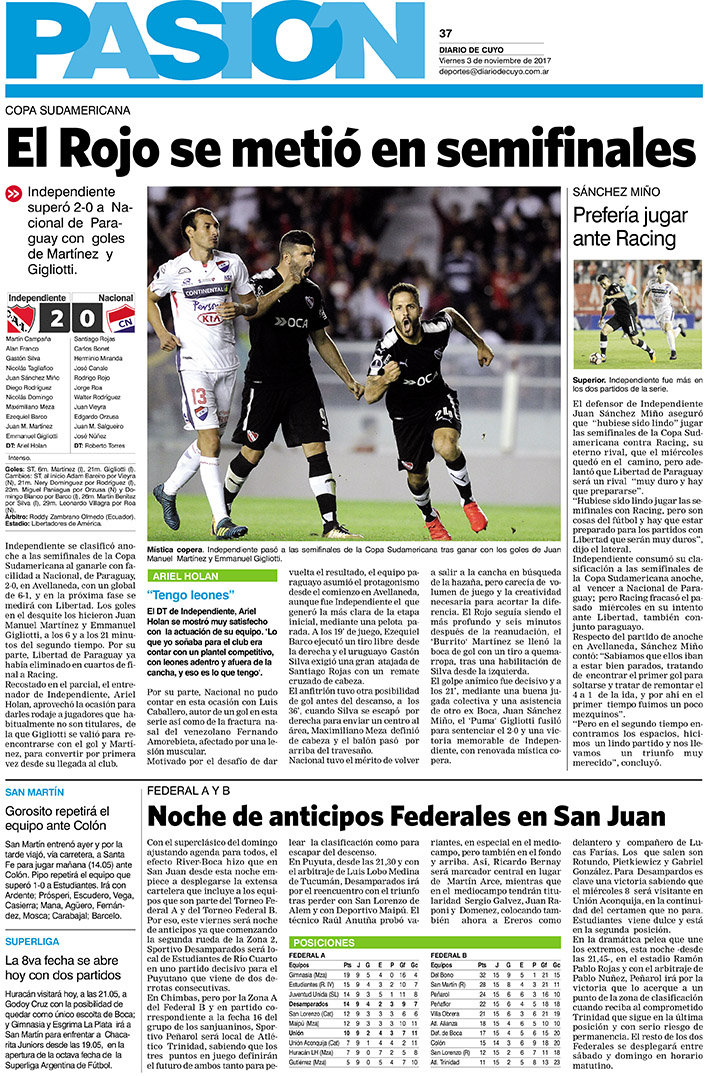 Diario de Cuyo | HOME | Noticias Tapa Pasión 03 de Noviembre de 2017 Por Redacción Diario de Cuyo 03/11/2017 · 0:00 Escuchar la noticia Escuchar la noticia Your browser doesn’t support HTML5 audio Ver los comentarios ›