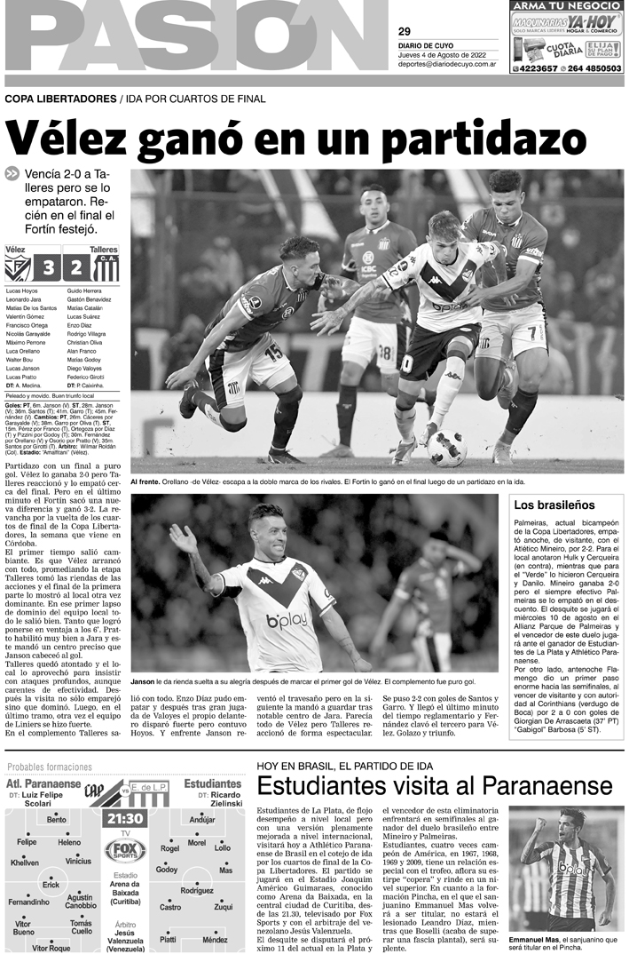 Diario de Cuyo | HOME | Noticias Tapa Pasión 04 de Agosto del 2022 Por Redacción Diario de Cuyo 04/08/2022 · 0:00 Escuchar la noticia Escuchar la noticia Your browser doesn’t support HTML5 audio Ver los comentarios ›