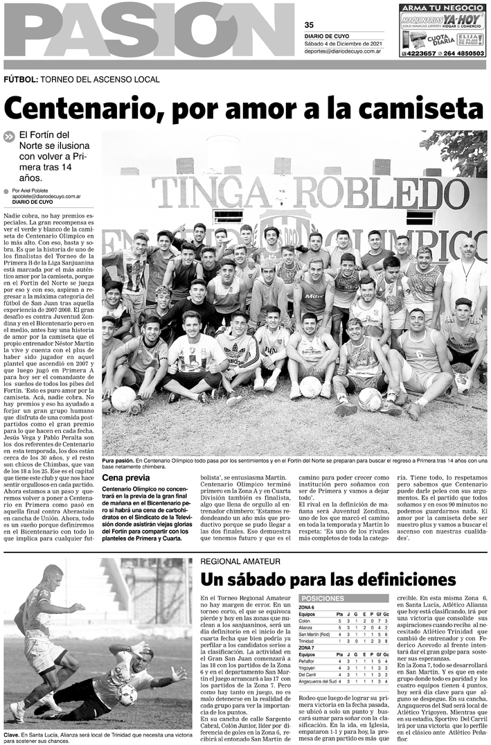 Diario de Cuyo | HOME | Noticias Tapa Pasión 04 de Diciembre del 2021 Por Redacción Diario de Cuyo 03/12/2021 · 0:00 Escuchar la noticia Escuchar la noticia Your browser doesn’t support HTML5 audio Ver los comentarios ›