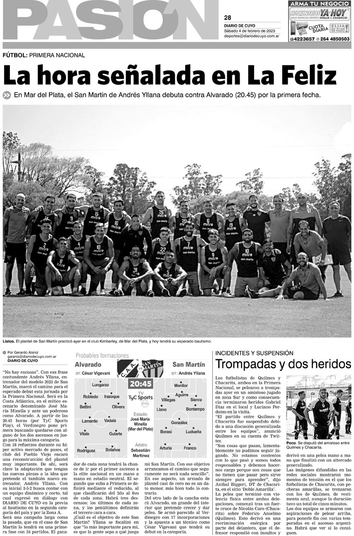 Diario de Cuyo | HOME | Noticias Tapa Pasión 04 de Febrero del 2023 Por Redacción Diario de Cuyo 03/02/2023 · 0:00 Escuchar la noticia Escuchar la noticia Your browser doesn’t support HTML5 audio Ver los comentarios ›
