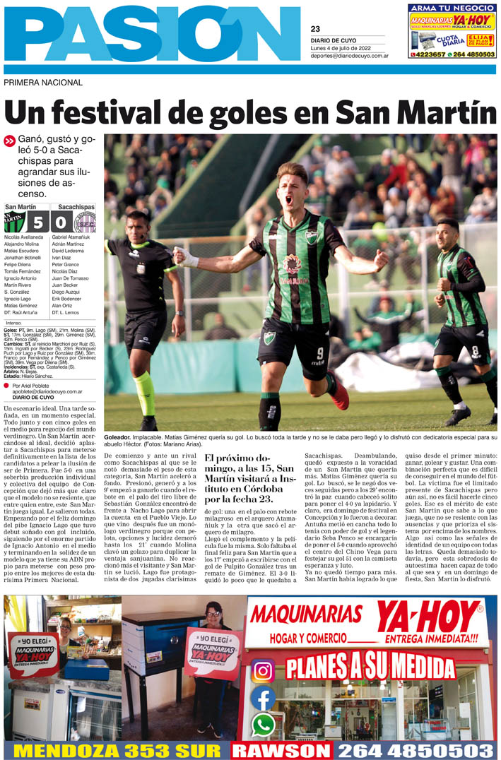 Diario de Cuyo | HOME | Noticias Tapa Pasión 04 de Julio del 2022 Por Redacción Diario de Cuyo 03/07/2022 · 0:00 Escuchar la noticia Escuchar la noticia Your browser doesn’t support HTML5 audio Ver los comentarios ›