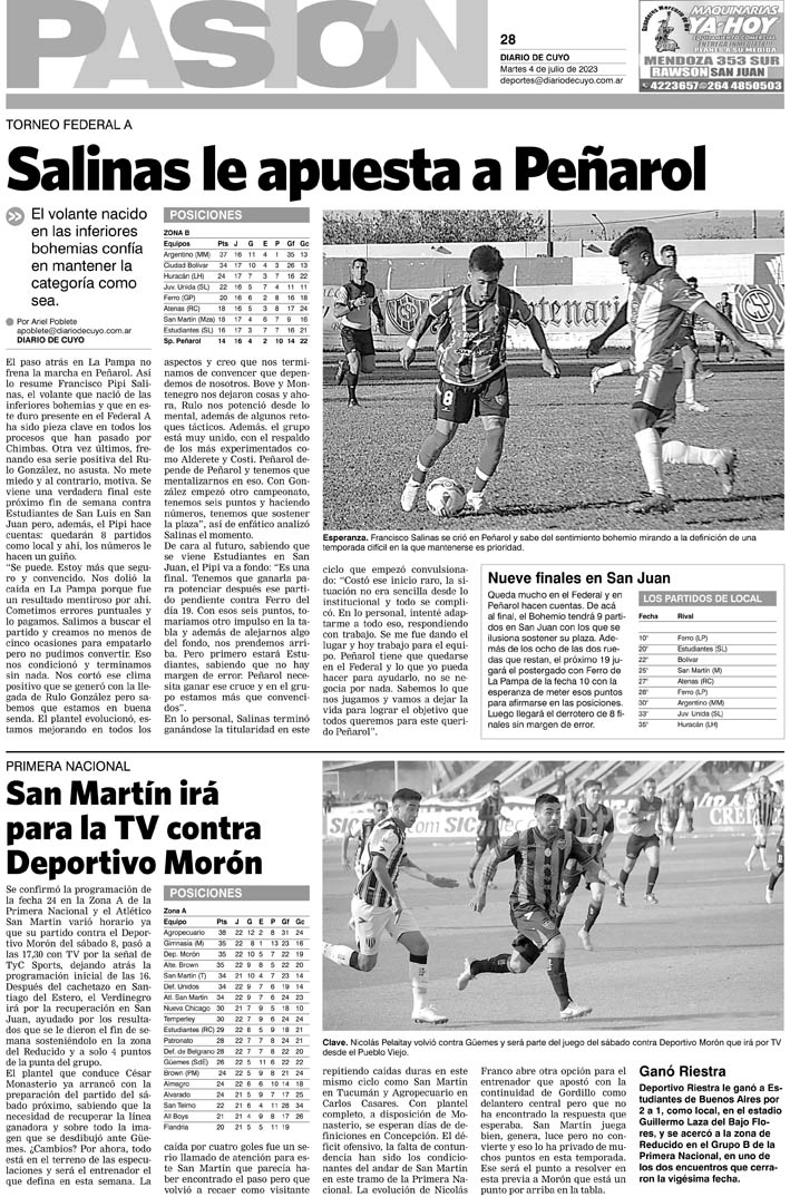 Diario de Cuyo | HOME | Noticias Tapa Pasión 04 de Julio del 2023 Por Redacción Diario de Cuyo 03/07/2023 · 0:00 Escuchar la noticia Escuchar la noticia Your browser doesn’t support HTML5 audio Ver los comentarios ›