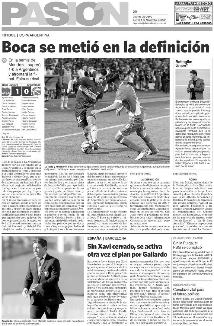 Diario de Cuyo | HOME | Noticias Tapa Pasión 04 de Noviembre del 2021 Por Redacción Diario de Cuyo 04/11/2021 · 0:00 Escuchar la noticia Escuchar la noticia Your browser doesn’t support HTML5 audio Ver los comentarios ›