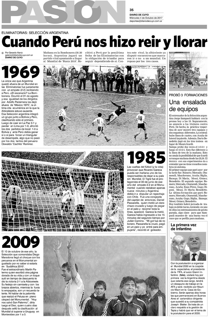 Diario de Cuyo | HOME | Noticias Tapa Pasión 04 de Octubre de 2017 Por Redacción Diario de Cuyo 03/10/2017 · 0:00 Escuchar la noticia Escuchar la noticia Your browser doesn’t support HTML5 audio Ver los comentarios ›