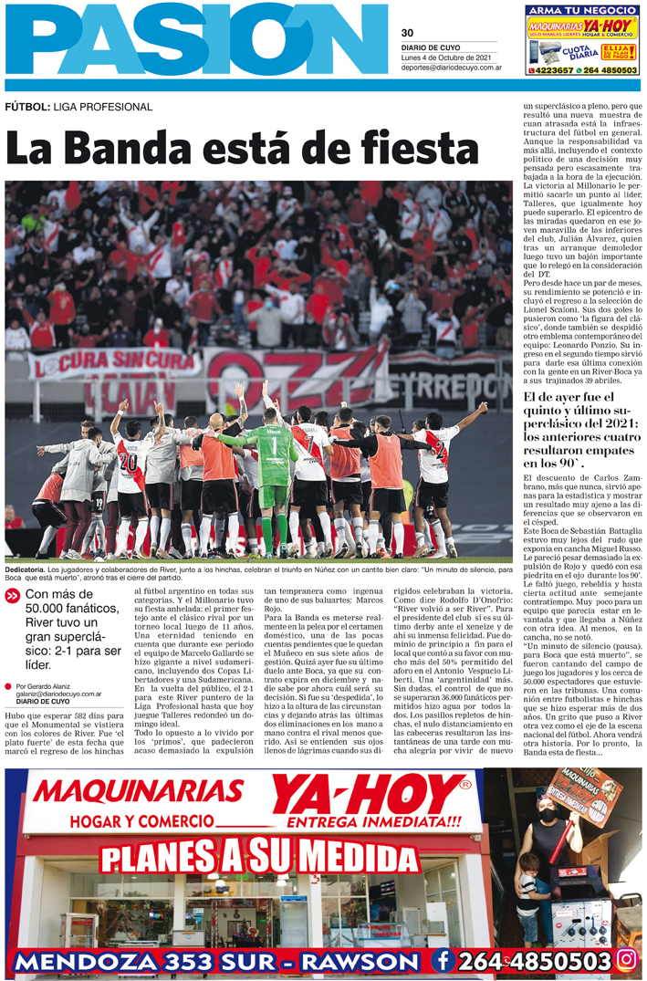 Diario de Cuyo | HOME | Noticias Tapa Pasión 04 de Octubre del 2021 Por Redacción Diario de Cuyo 03/10/2021 · 0:00 Escuchar la noticia Escuchar la noticia Your browser doesn’t support HTML5 audio Ver los comentarios ›