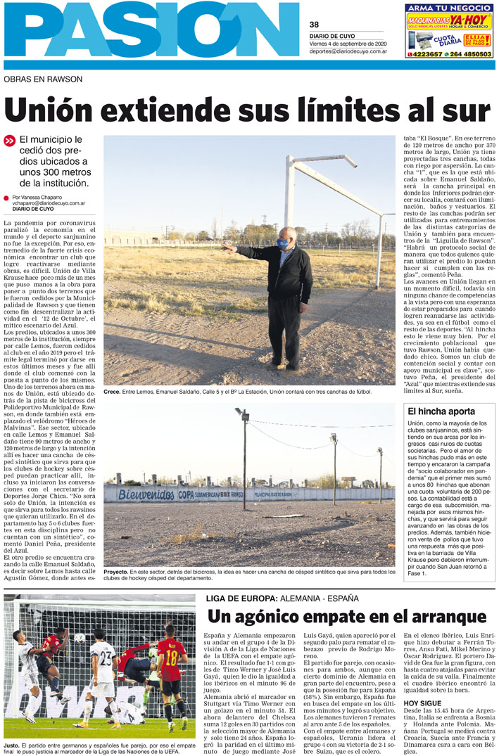Diario de Cuyo | HOME | Noticias Tapa Pasión 04 de Septiembre del 2020 Por Redacción Diario de Cuyo 03/09/2020 · 0:00 Escuchar la noticia Escuchar la noticia Your browser doesn’t support HTML5 audio Ver los comentarios ›