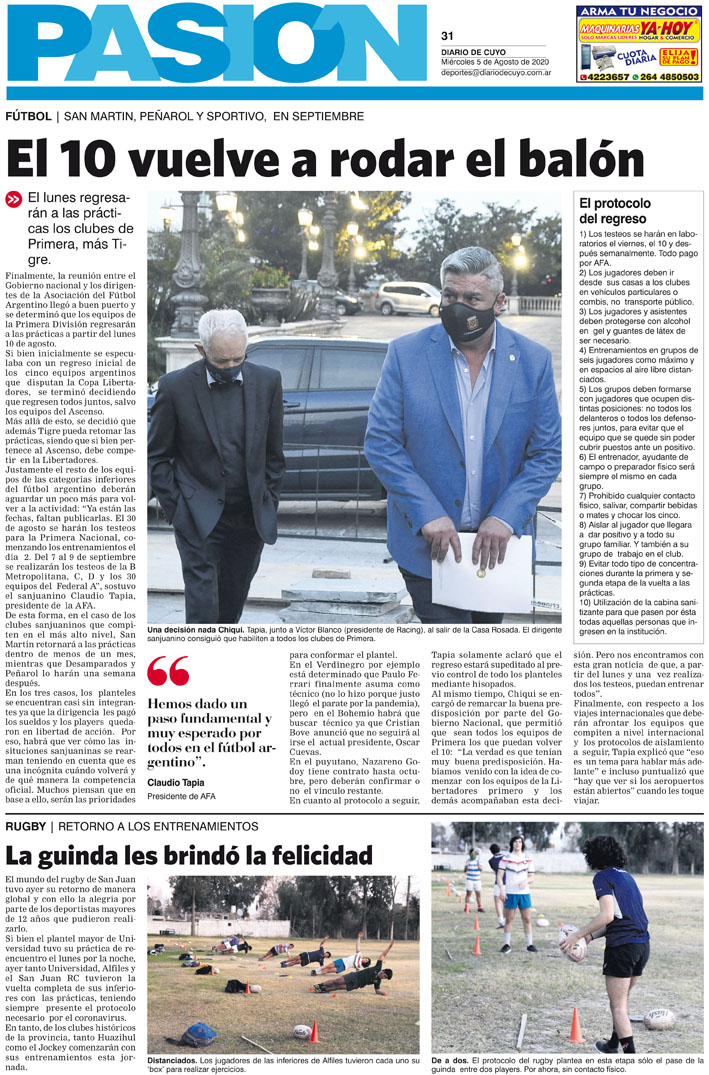 Diario de Cuyo | HOME | Noticias Tapa Pasión 05 de Agosto del 2020 Por Redacción Diario de Cuyo 04/08/2020 · 0:00 Escuchar la noticia Escuchar la noticia Your browser doesn’t support HTML5 audio Ver los comentarios ›