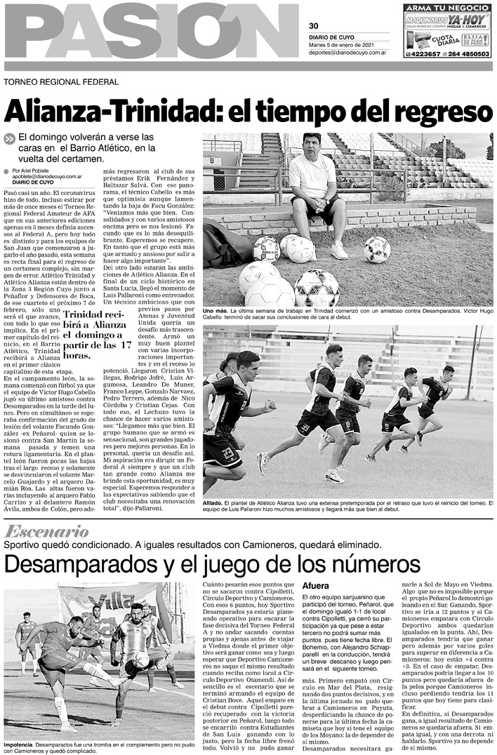 Diario de Cuyo | HOME | Noticias Tapa Pasión 05 de Enero del 2021 Por Redacción Diario de Cuyo 04/01/2021 · 0:00 Escuchar la noticia Escuchar la noticia Your browser doesn’t support HTML5 audio Ver los comentarios ›