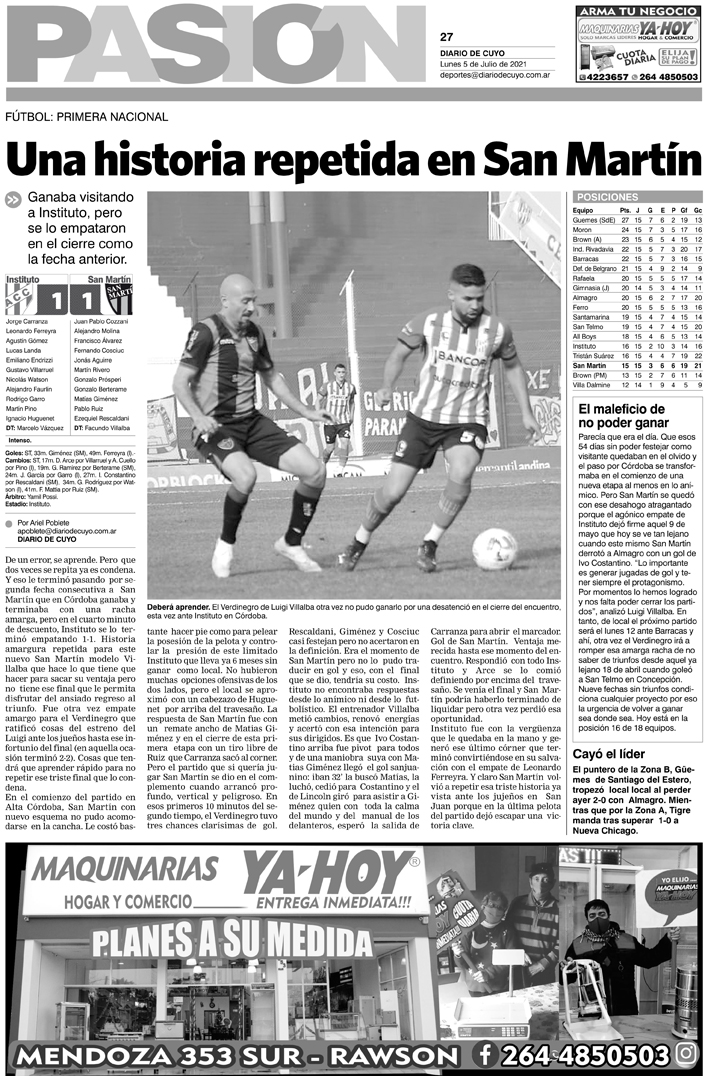 Diario de Cuyo | HOME | Noticias Tapa Pasión 05 de Julio del 2021 Por Redacción Diario de Cuyo 04/07/2021 · 0:00 Escuchar la noticia Escuchar la noticia Your browser doesn’t support HTML5 audio Ver los comentarios ›