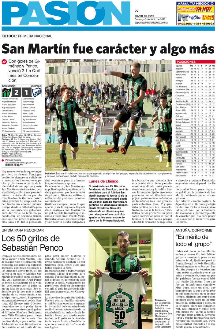 Diario de Cuyo | HOME | Noticias Tapa Pasión 05 de Junio del 2022 Por Redacción Diario de Cuyo 04/06/2022 · 0:00 Escuchar la noticia Escuchar la noticia Your browser doesn’t support HTML5 audio Ver los comentarios ›
