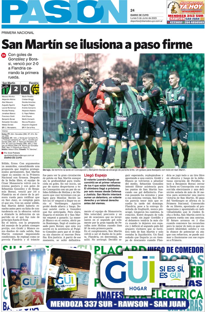 Diario de Cuyo | HOME | Noticias Tapa Pasión 05 de Junio del 2023 Por Redacción Diario de Cuyo 04/06/2023 · 0:00 Escuchar la noticia Escuchar la noticia Your browser doesn’t support HTML5 audio Ver los comentarios ›