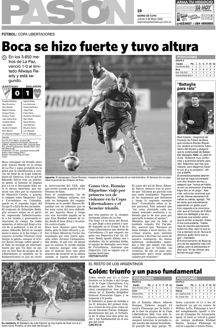 Diario de Cuyo | HOME | Noticias Tapa Pasión 05 de Mayo del 2022 Por Redacción Diario de Cuyo 04/05/2022 · 0:00 Escuchar la noticia Escuchar la noticia Your browser doesn’t support HTML5 audio Ver los comentarios ›