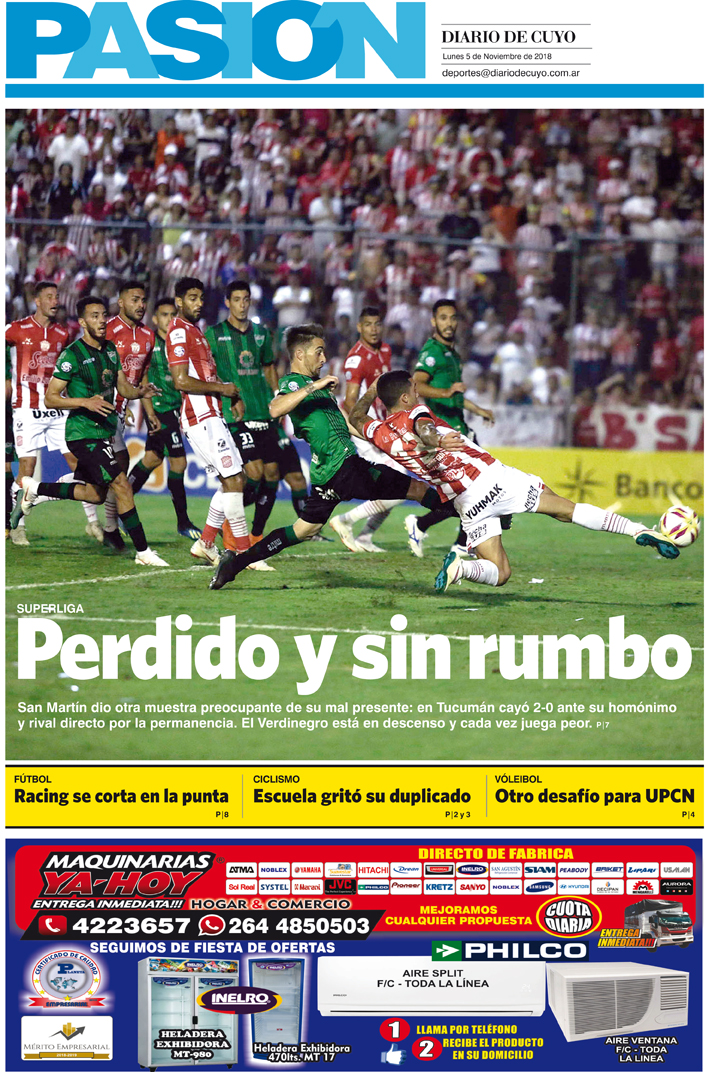 Diario de Cuyo | HOME | Noticias | Tapa Pasión Tapa Pasión 05 de Noviembre de 2018 Por Redacción Diario de Cuyo 05/11/2018 · 0:00 Escuchar la noticia Escuchar la noticia Your browser doesn’t support HTML5 audio Tapa Pasión Ver los comentarios ›