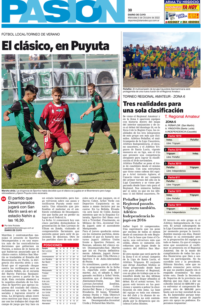 Diario de Cuyo | HOME | Noticias Tapa Pasión 05 de Octubre del 2022 Por Redacción Diario de Cuyo 04/10/2022 · 0:00 Escuchar la noticia Escuchar la noticia Your browser doesn’t support HTML5 audio Ver los comentarios ›