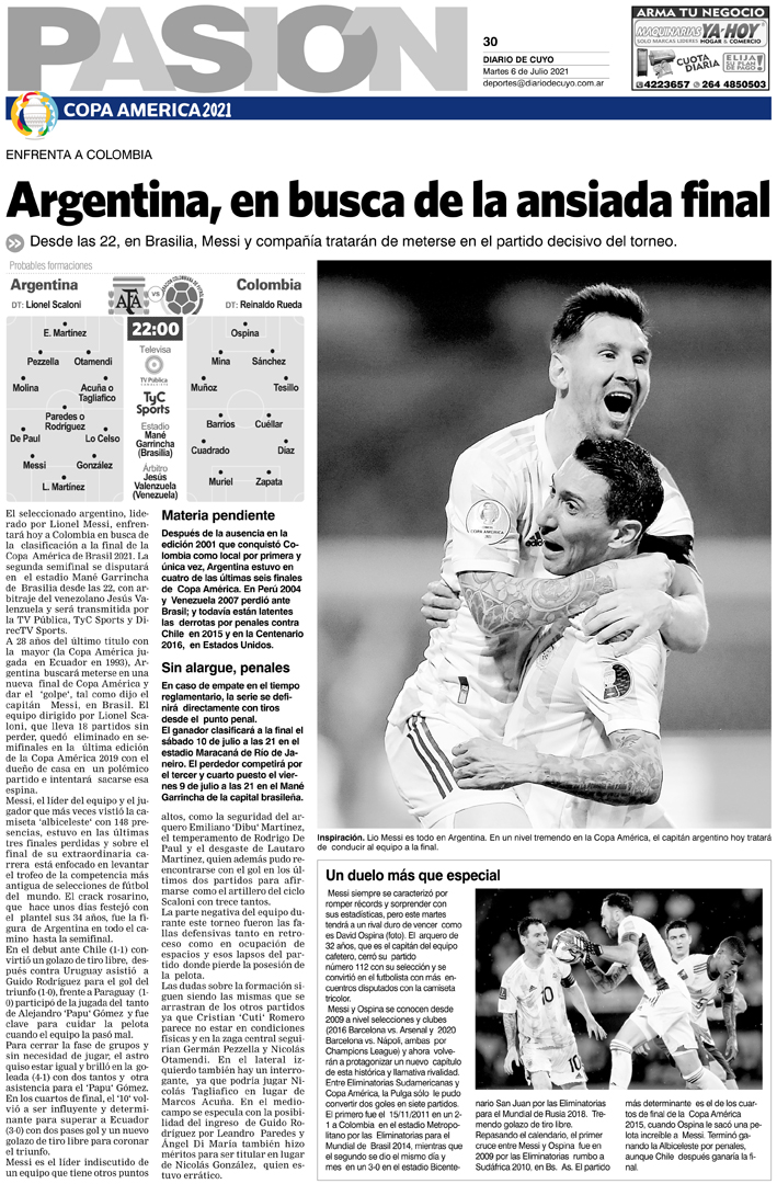 Diario de Cuyo | HOME | Noticias Tapa Pasión 06 de Julio del 2021 Por Redacción Diario de Cuyo 06/07/2021 · 0:00 Escuchar la noticia Escuchar la noticia Your browser doesn’t support HTML5 audio Ver los comentarios ›