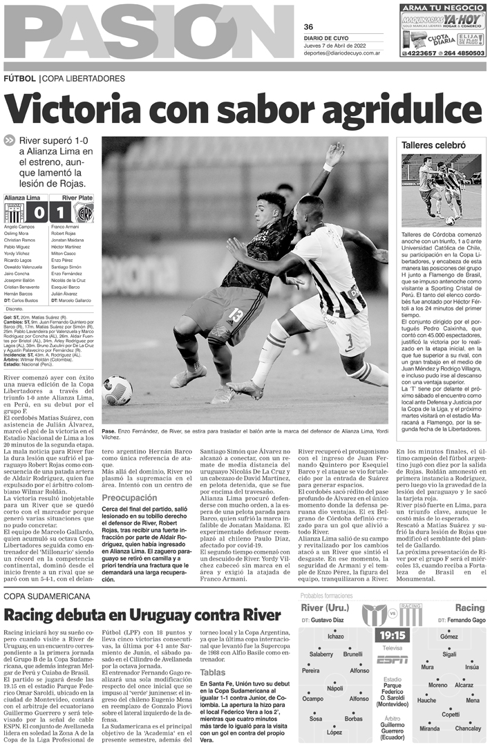 Diario de Cuyo | HOME | Noticias Tapa Pasión 07 de Abril del 2022 Por Redacción Diario de Cuyo 06/04/2022 · 0:00 Escuchar la noticia Escuchar la noticia Your browser doesn’t support HTML5 audio Ver los comentarios ›