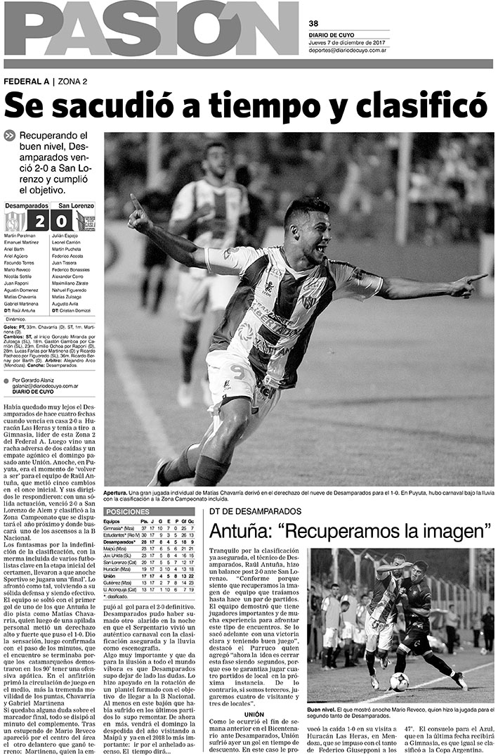 Diario de Cuyo | HOME | Noticias | Tapa Pasión Tapa Pasión 07 de Diciembre de 2017 Por Redacción Diario de Cuyo 06/12/2017 · 0:00 Escuchar la noticia Escuchar la noticia Your browser doesn’t support HTML5 audio Tapa Pasión Ver los comentarios ›