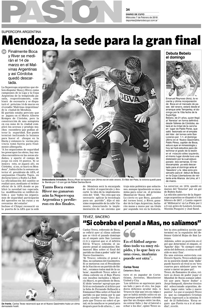 Diario de Cuyo | HOME | Noticias | Tapa Pasión Tapa Pasión 07 de Febrero del 2018 Por Redacción Diario de Cuyo 06/02/2018 · 0:00 Escuchar la noticia Escuchar la noticia Your browser doesn’t support HTML5 audio Tapa Pasión Ver los comentarios ›
