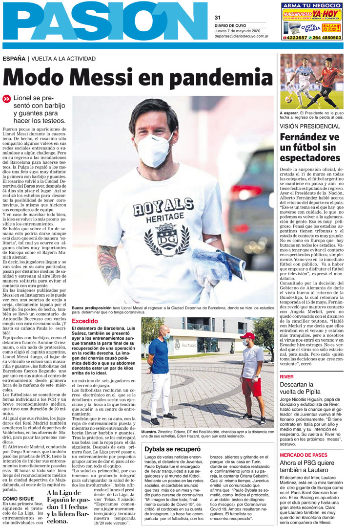 Diario de Cuyo | HOME | Noticias Tapa Pasión 07 de Mayo del 2020 Por Redacción Diario de Cuyo 06/05/2020 · 0:00 Escuchar la noticia Escuchar la noticia Your browser doesn’t support HTML5 audio Ver los comentarios ›