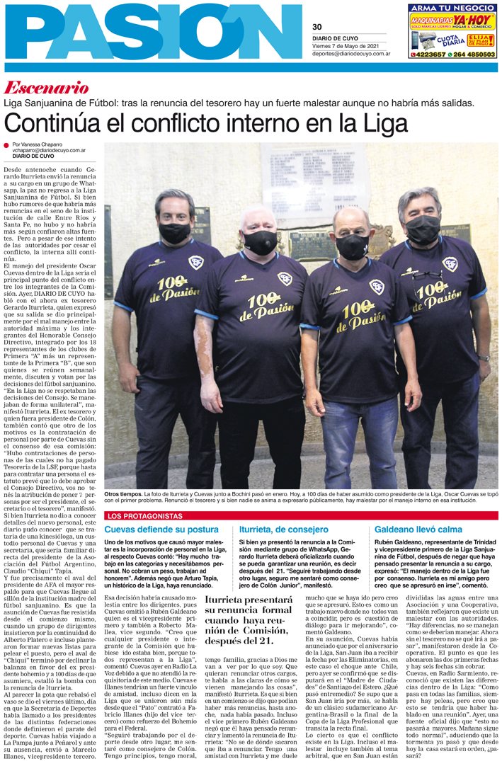 Diario de Cuyo | HOME | Noticias Tapa Pasión 07 de Mayo del 2021 Por Redacción Diario de Cuyo 06/05/2021 · 0:00 Escuchar la noticia Escuchar la noticia Your browser doesn’t support HTML5 audio Ver los comentarios ›