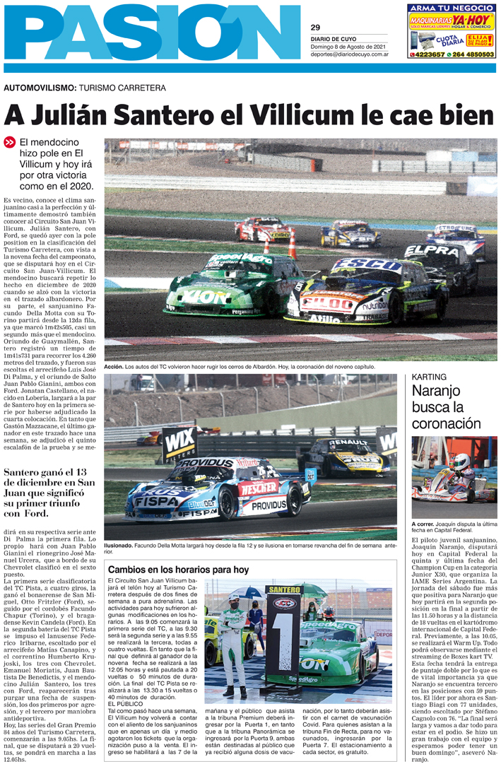 Diario de Cuyo | HOME | Noticias Tapa Pasión 08 de Agosto del 2021 Por Redacción Diario de Cuyo 07/08/2021 · 0:00 Escuchar la noticia Escuchar la noticia Your browser doesn’t support HTML5 audio Ver los comentarios ›