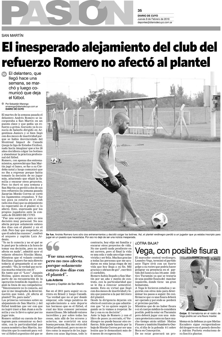 Diario de Cuyo | HOME | Noticias | Tapa Pasión Tapa Pasión 08 de Febrero del 2018 Por Redacción Diario de Cuyo 07/02/2018 · 0:00 Escuchar la noticia Escuchar la noticia Your browser doesn’t support HTML5 audio Tapa Pasión Ver los comentarios ›