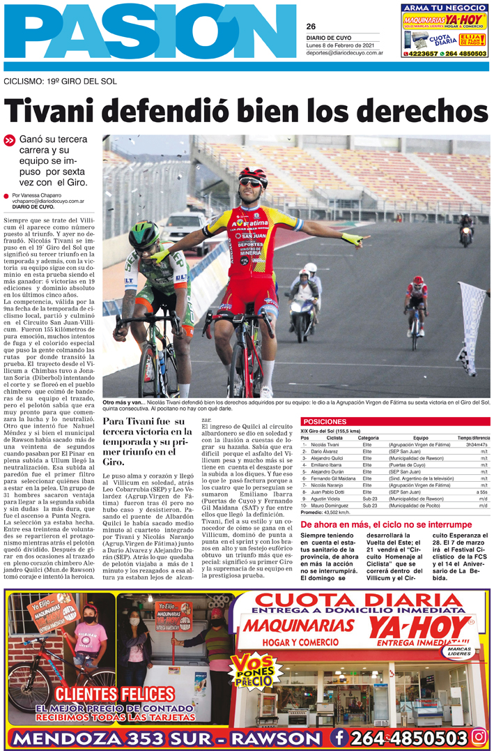 Diario de Cuyo | HOME | Noticias Tapa Pasión 08 de Febrero del 2021 Por Redacción Diario de Cuyo 07/02/2021 · 0:00 Escuchar la noticia Escuchar la noticia Your browser doesn’t support HTML5 audio Ver los comentarios ›
