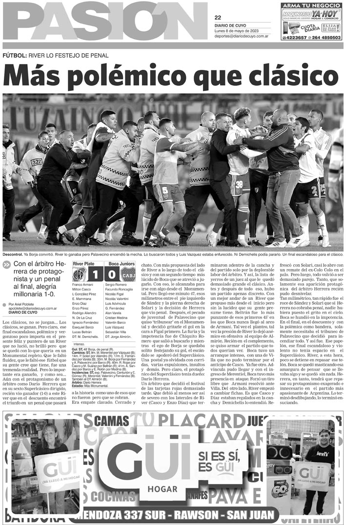 Diario de Cuyo | HOME | Noticias Tapa Pasión 08 de Mayo del 2023 Por Redacción Diario de Cuyo 07/05/2023 · 0:00 Escuchar la noticia Escuchar la noticia Your browser doesn’t support HTML5 audio Ver los comentarios ›