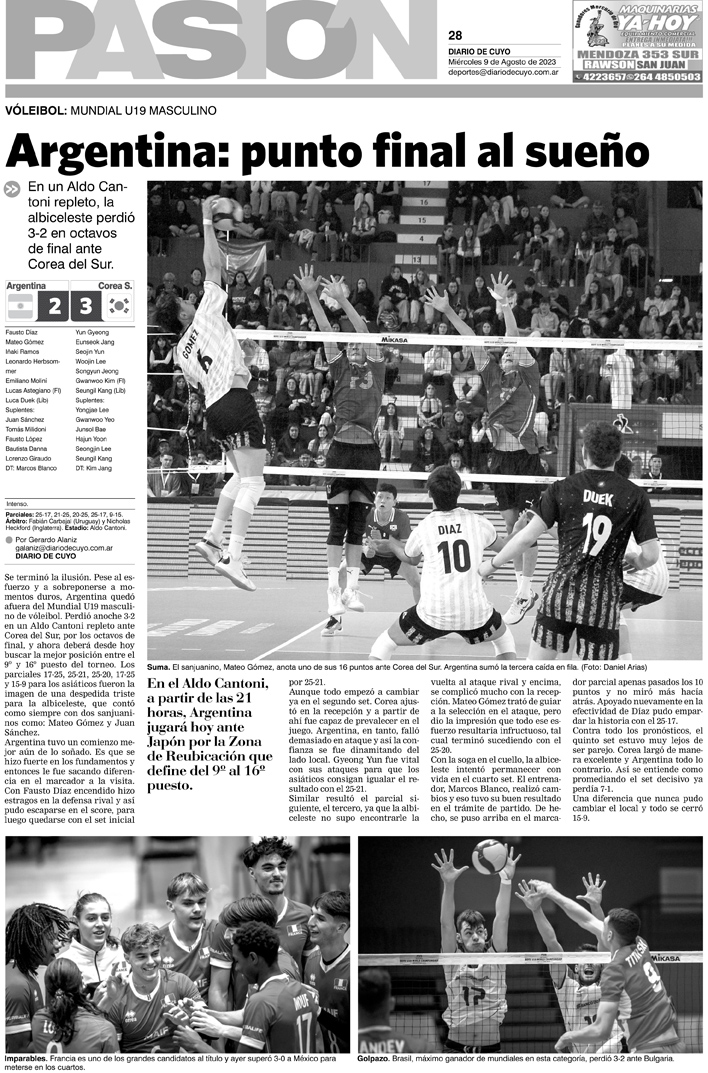 Diario de Cuyo | HOME | Noticias Tapa Pasión 09 de Agosto del 2023 Por Redacción Diario de Cuyo 09/08/2023 · 0:00 Escuchar la noticia Escuchar la noticia Your browser doesn’t support HTML5 audio Ver los comentarios ›
