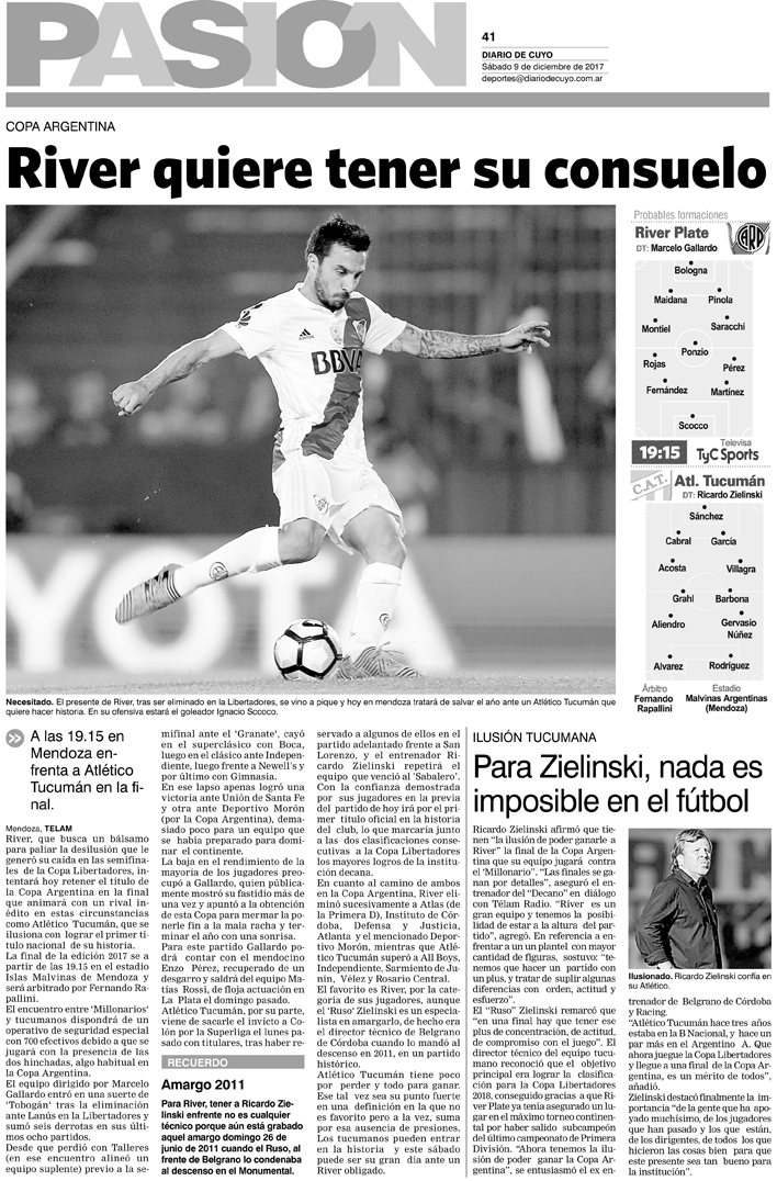 Diario de Cuyo | HOME | Noticias | Tapa Pasión Tapa Pasión 09 de Diciembre de 2017 Por Redacción Diario de Cuyo 08/12/2017 · 0:00 Escuchar la noticia Escuchar la noticia Your browser doesn’t support HTML5 audio Tapa Pasión Ver los comentarios ›