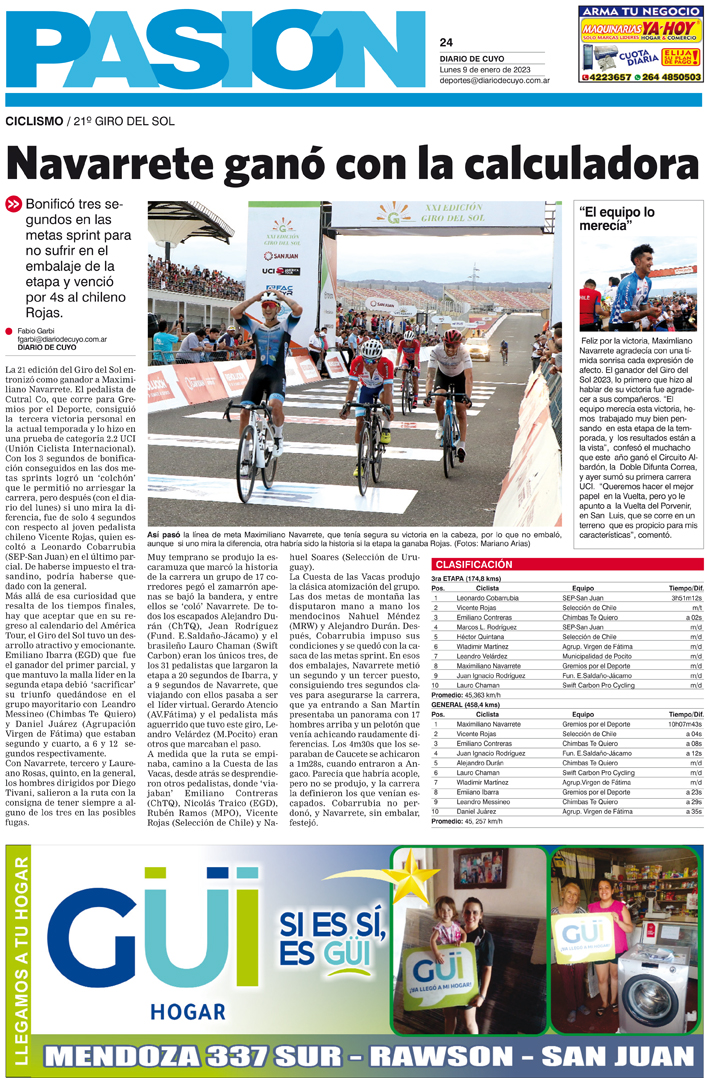 Diario de Cuyo | HOME | Noticias Tapa Pasión 09 de Enero del 2023 Por Redacción Diario de Cuyo 09/01/2023 · 0:00 Escuchar la noticia Escuchar la noticia Your browser doesn’t support HTML5 audio Ver los comentarios ›