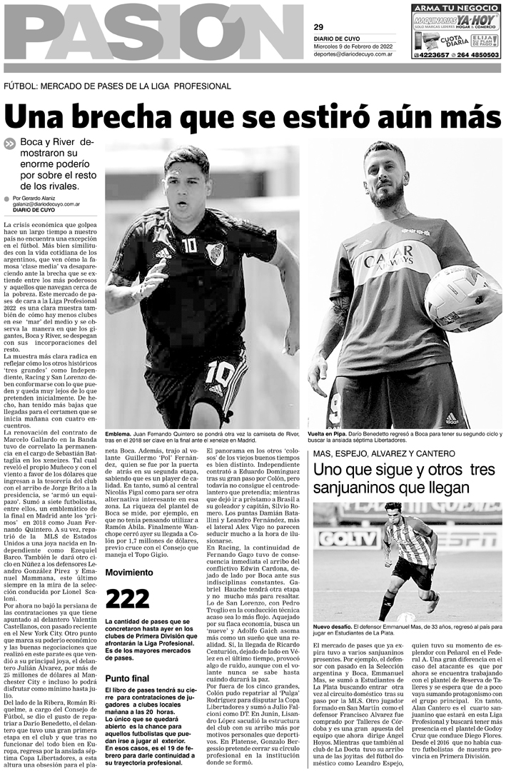 Diario de Cuyo | HOME | Noticias Tapa Pasión 09 de Febrero del 2022 Por Redacción Diario de Cuyo 09/02/2022 · 0:00 Escuchar la noticia Escuchar la noticia Your browser doesn’t support HTML5 audio Ver los comentarios ›