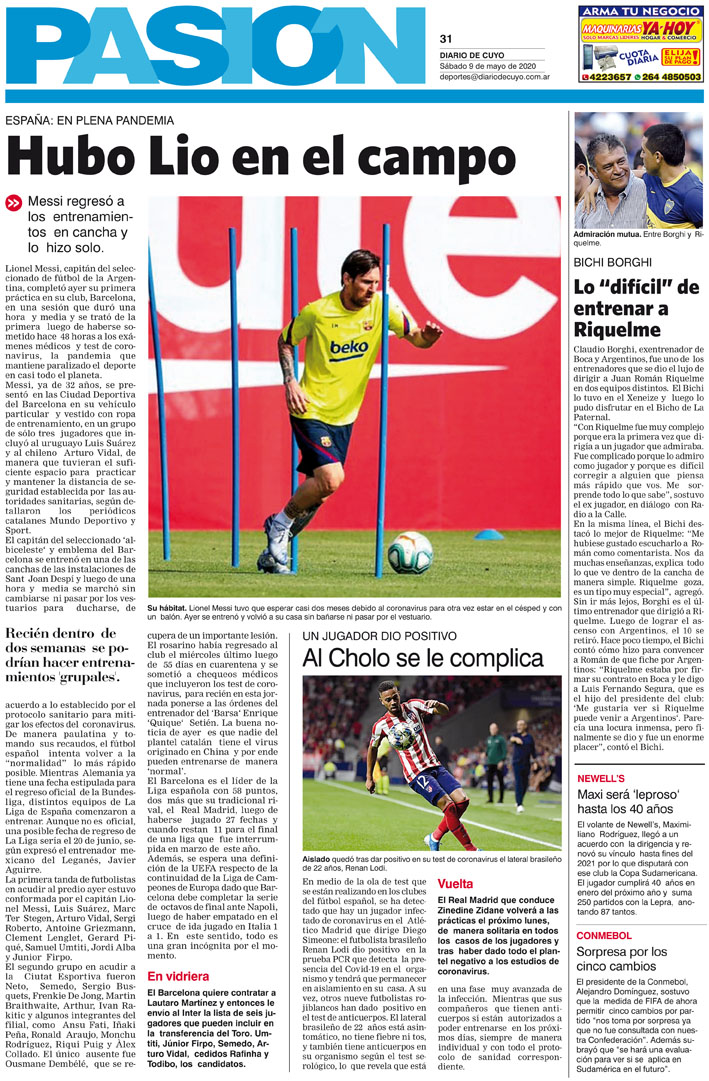Diario de Cuyo | HOME | Noticias Tapa Pasión 09 de Mayo del 2020 Por Redacción Diario de Cuyo 08/05/2020 · 0:00 Escuchar la noticia Escuchar la noticia Your browser doesn’t support HTML5 audio Ver los comentarios ›