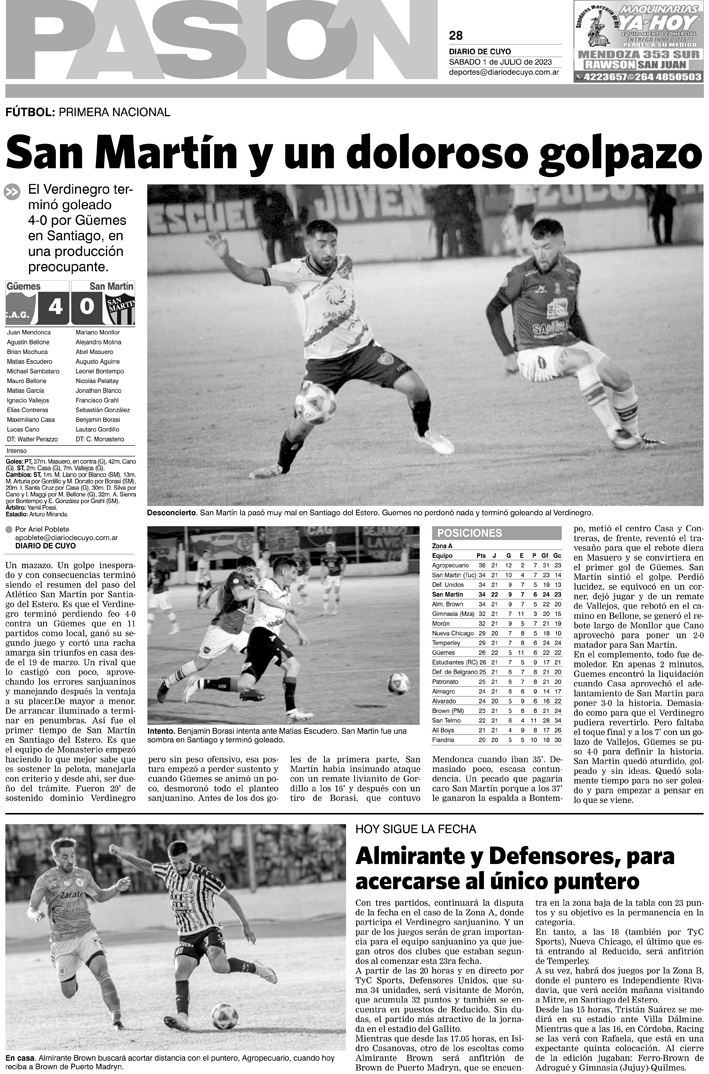Diario de Cuyo | HOME | Noticias Tapa Pasión 1 de Julio de 2023 Por Redacción Diario de Cuyo 30/06/2023 · 0:00 Escuchar la noticia Escuchar la noticia Your browser doesn’t support HTML5 audio Ver los comentarios ›