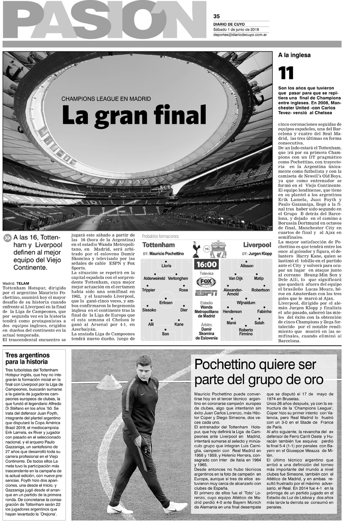 Diario de Cuyo | HOME | Noticias | Tapa Pasión Tapa Pasión 1 de Junio 2019 Por Redacción Diario de Cuyo 01/06/2019 · 0:00 Escuchar la noticia Escuchar la noticia Your browser doesn’t support HTML5 audio Tapa Pasión Ver los comentarios ›